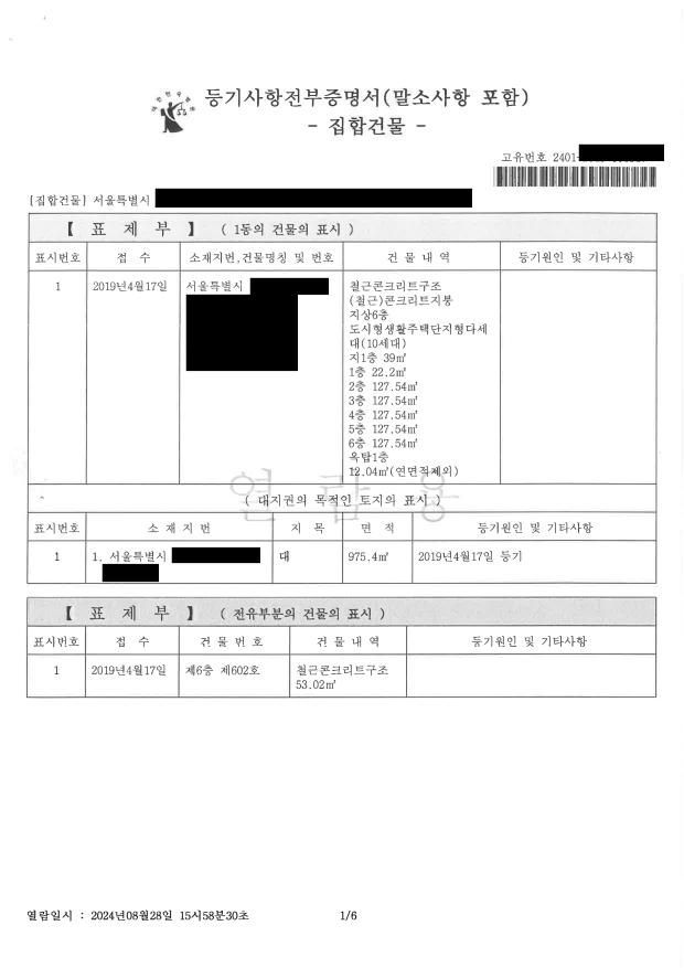 등기부등본상 궁금한 점이 있어서 문의드립니다.