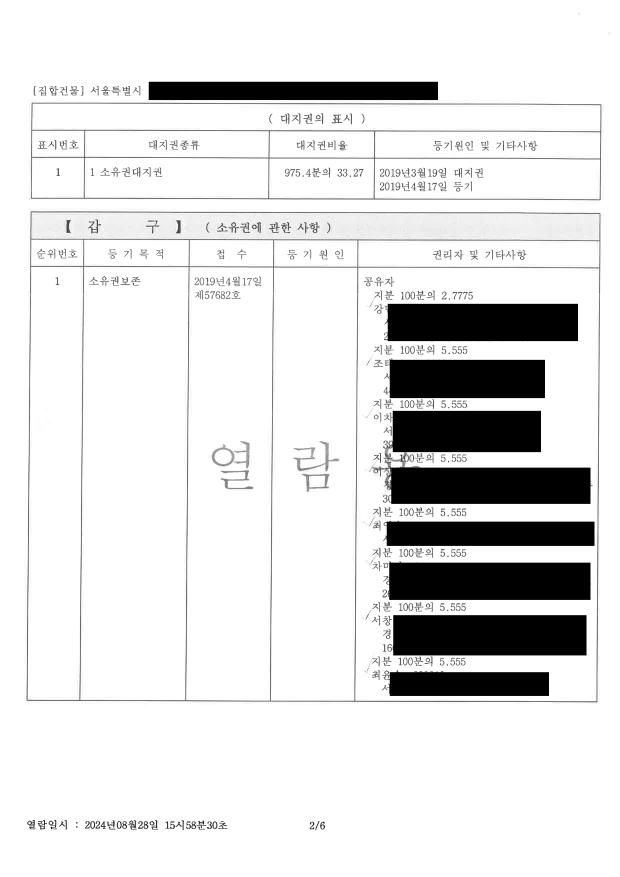 1. 갑구 '순위번호 1' 소유권보존에 있는 공유자의 경우 모든 지분을 '순위번호 2' 백영*님에게 이전한 것으로 보입니다.