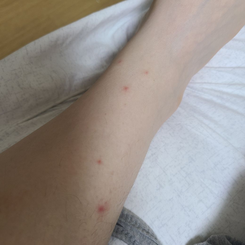 어제밤 다리에 붉은반점이 피부속에 있었는데요 오늘 피부겉으로 나와서 볼록하게 나왔더라구요ㅠㅠ오른쪽 다리에만 8개가있는데 왜 저런걸까요?