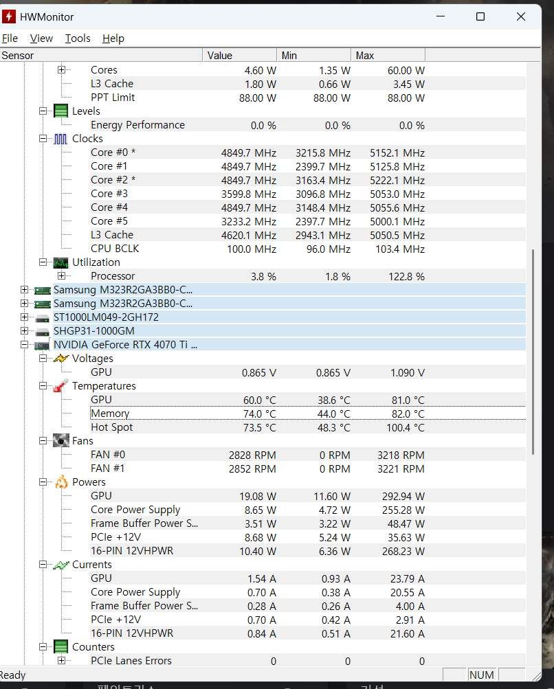 일단 개인적으로 HWINFO와 같은 툴로 다시 제점검 해보시구요(저 프로그램 잘 측정 안되는 경우가 있더라구요)