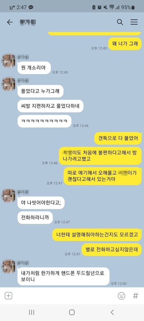 여자친구가 이전에 알고지낸 사람이 카톡으로 욕설을 했는데 미안하다 사과하라고 하고싶지만 할거같지도않아서요.