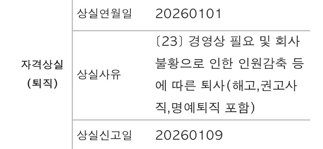 회사에서 제가 소속돼있는 사업부를 분할하는 과정에서 사전 통보없이 아래와 같이 퇴직 처리를 했다는 걸 오늘(1/14) 상실 신고사실 통지서를 받고 알게 되었습니다.