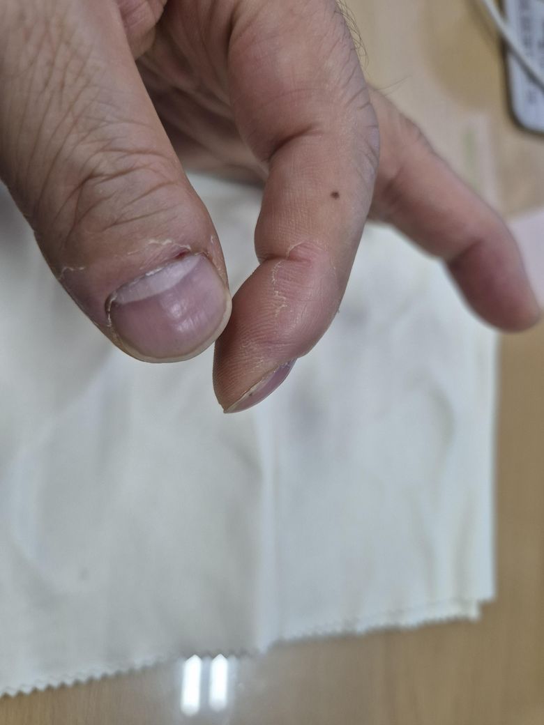 손가락 껍질이 벗겨지는 것 때문에 고민이시군요.