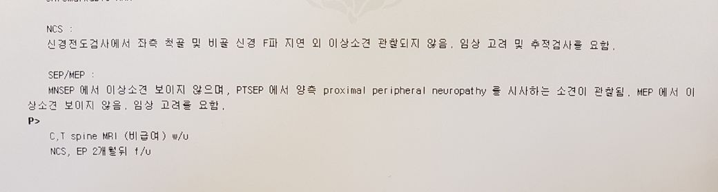 2주전 검사결과이구요, 현재 더 심해져서 전신으로 감각이상이 있습니다.