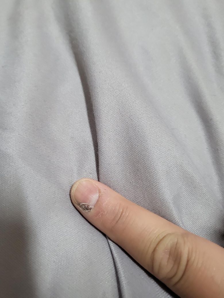 사진과 설명을 보면 손톱 끝이 층처럼 들리며 갈라진 형태로, 흔한 “손톱 박리/층분리(이른바 brittle nail, onychoschizia)” 양상입니다. 물 접촉이 잦고 손톱을 뜯는 습관이 있을 때 가장 잘 생깁니다. 통증이 없고 손톱 끝부터 갈라지는 점도 이와 일치합니다.