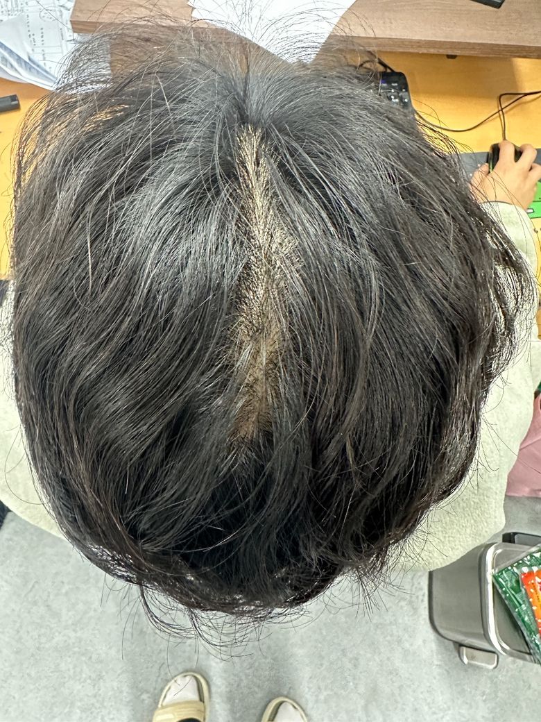 정수리 사진만 보고 탈모인지를 파악하는건 어렵습니다. 두피 상태와 모발 굵기 등 다양한 검사를 받아보셔야 탈모인지 아닌지 알수있어요. 하루에 50-100개의 머리카락이 빠지는 건 지극히 정상적인 현상이나 하루에 빠지는 머리카락이 하루에 100개 이상 되는 듯 하고 숱이 줄거나 헤어라인이 뒤로 밀리는 듯한 느낌이 든다면 탈모를 의심을 해볼수있죠. 이런 경우 가까운 피부과나 탈모 병원에 가서 검사를 받아보셔야 합니다