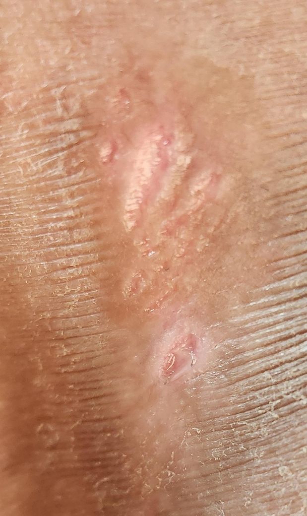 태선화가 많이 진행된 것을 보아 피부를 아주 많이 긁은 것으로 보입니다.