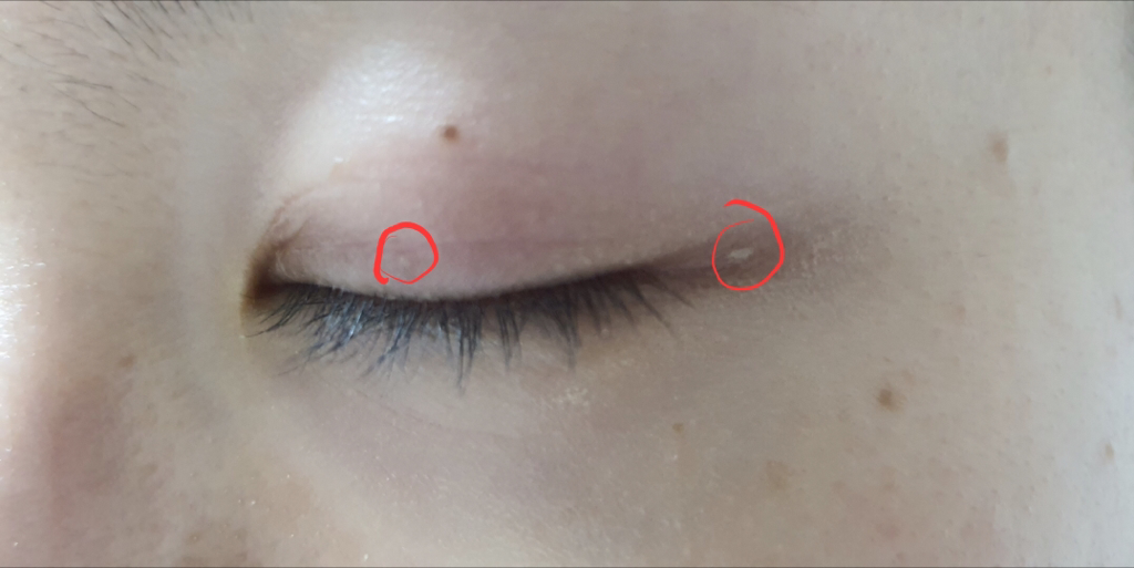눈에는 조그맣게 뭐가 났었는데 현재는 눈 옆에 생긴 것은 없어지고 위에만 나있습니다. 더 커지진 않습니다.