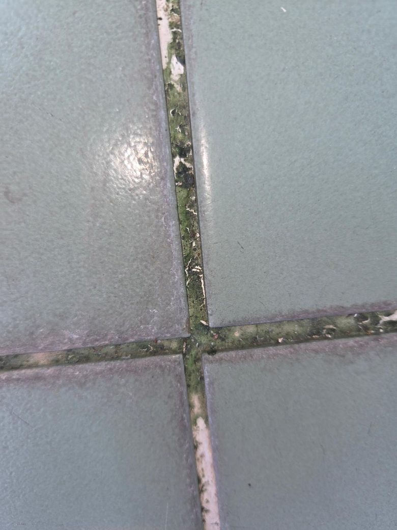 베란다 바닥 타일 사이 녹색 물때? 곰팡이?