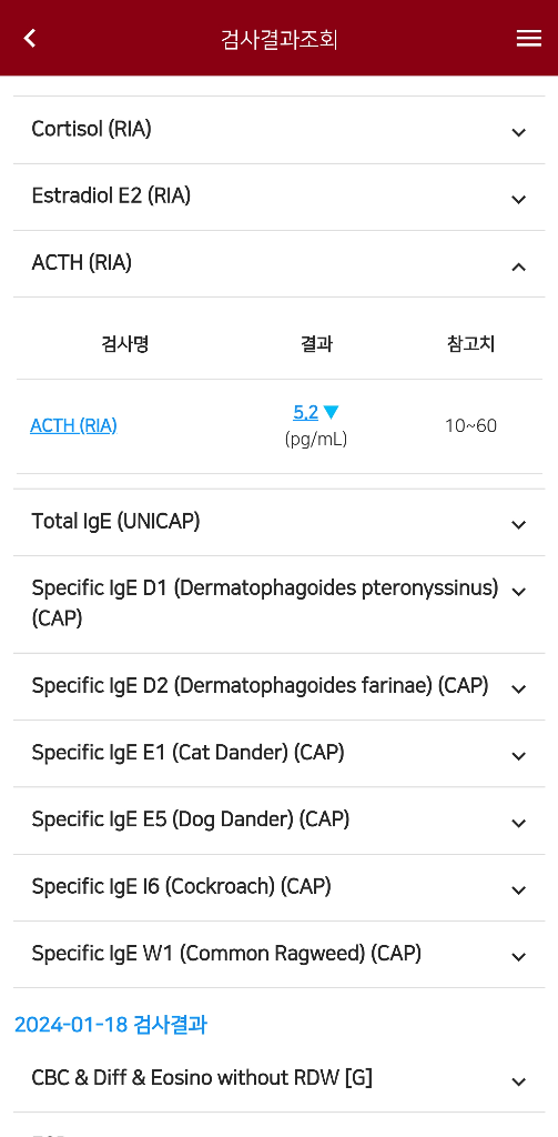 제가 대학병원에서 피검사를했는데acth수치가 저렇게 낮게나왔어요 왜그런걸까요?그리고어떤문제가되죠??