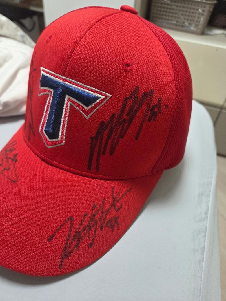 사진속 모자는 2019 KBO 올스타전(창원)에서 받은 기아타이거즈 관련 사인모자인데 사인에는 대부분 이름이 아닌 서명형 이니셜, 별명, 등번호만 쓰여 있어 식별이 어렵고 확정적으로 누구라고 말하기 어렵씁니다. 다만 두번째 이미지 사인은 #25라 보이지만 2019년 기준 기아타이거즈의 최형우(25번), 한승택(22번)등이 가능성이 있지만 확신할 수 없습니다. 정확한 선수 식별이 가능하여 최형우, 김선빈, 양현종 같은 인기 선수 사인이면 보통 3만~10만원인데 불명확한 사인이거나 선수 이름을 특정하지 못하면 실거래가는 낮거나 거래가 어려울수 있습니다.