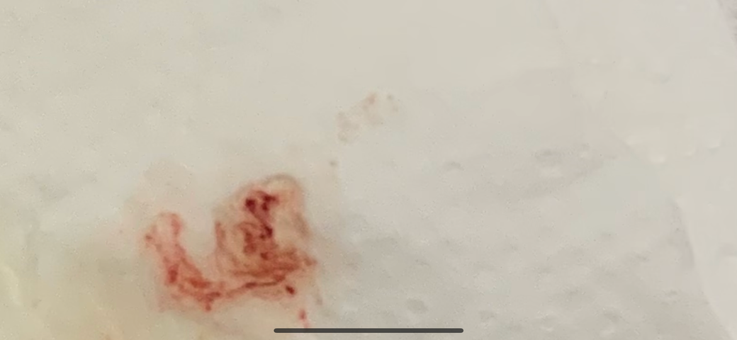 한시간 뒤 또한번 소량의 대변을 보았는데 대변의 한쪽에 피가 묻어 나왔고 닦는데 계속 피가 점액과 같이 닦여 나왔습니다.