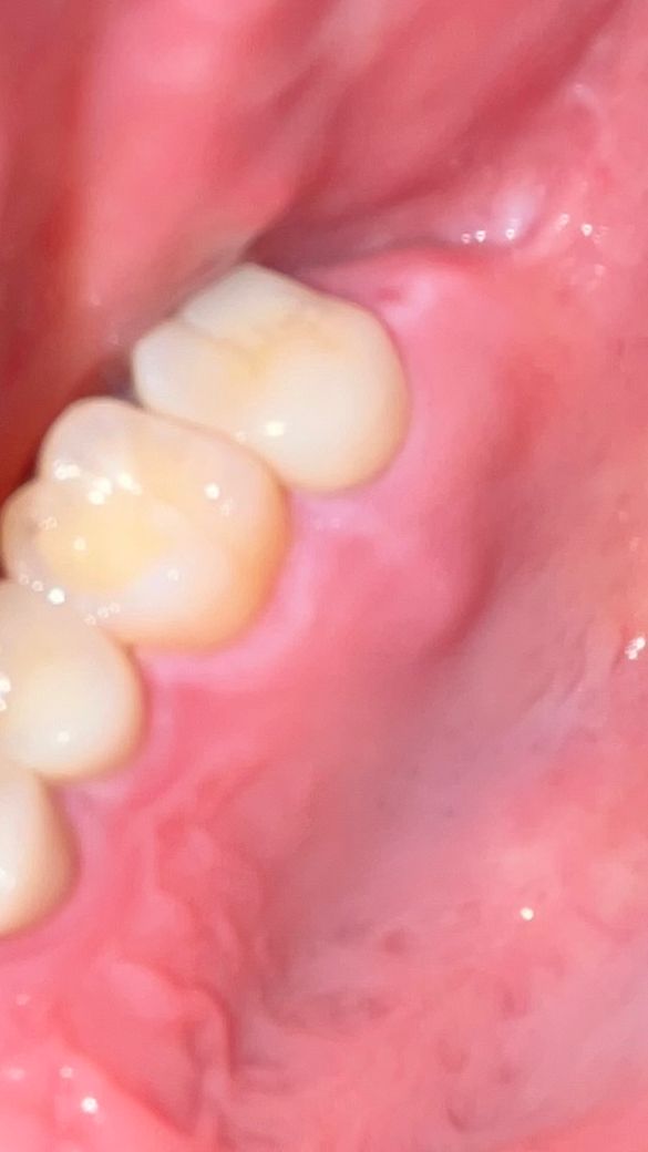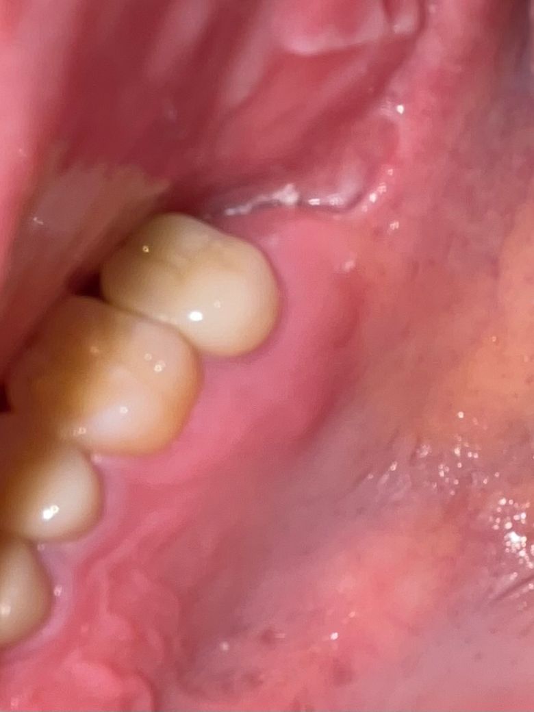 사진 상으로는 최후방 잇몸에 생긴 염증으로 앞에 치아들과는 연관이 없어 보이지만 통증 부위가 커지고 통증이 증가하면 치과 방문하여 검사 해보는 것이 좋습니다