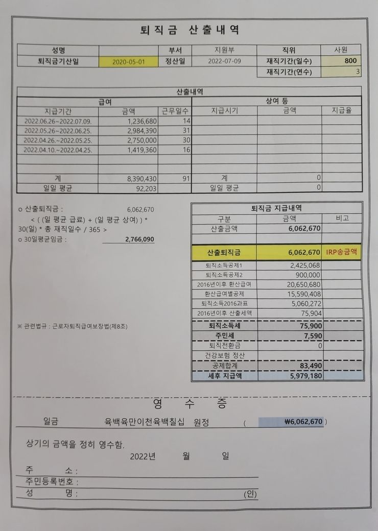 퇴직금 계산법 이게 맞나요?? 아니면 어떻게 해야하나요