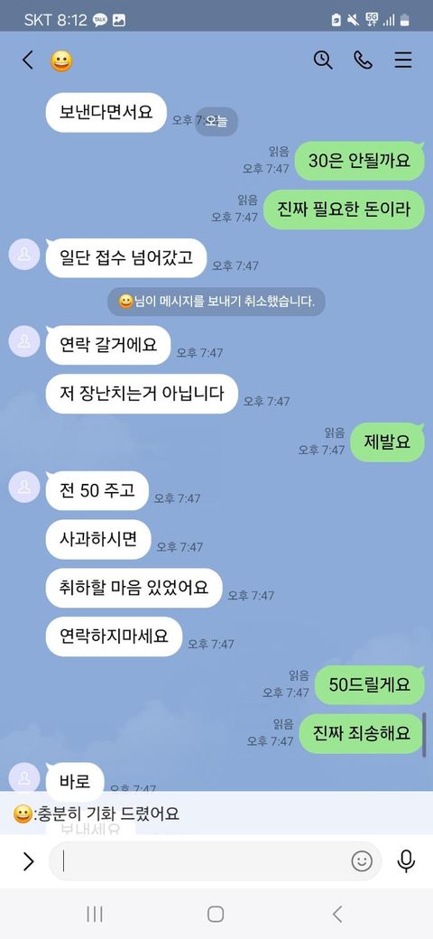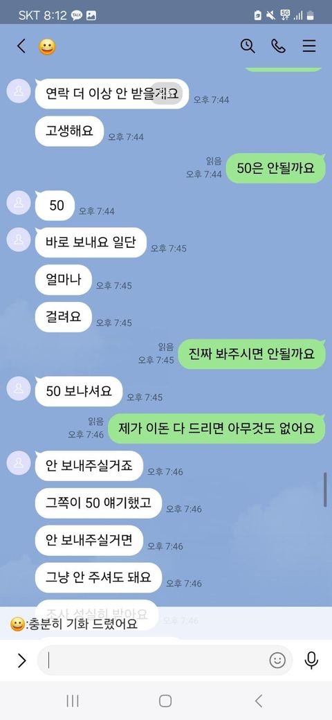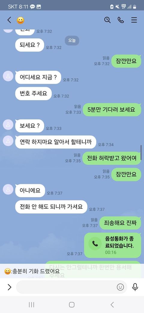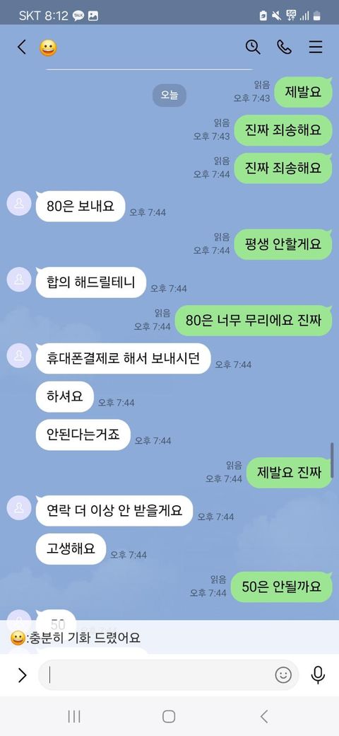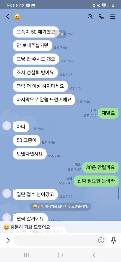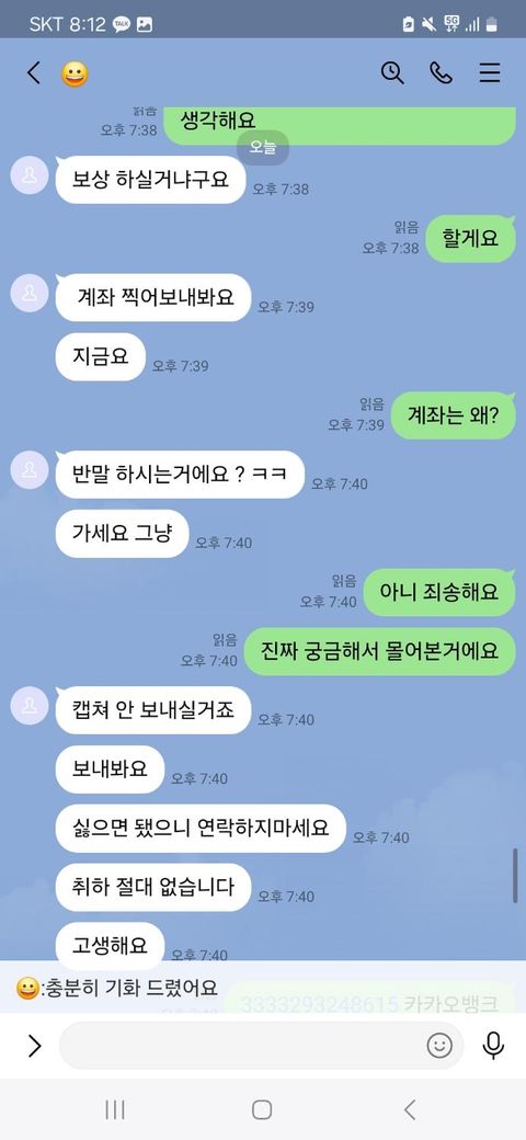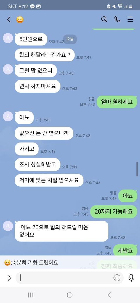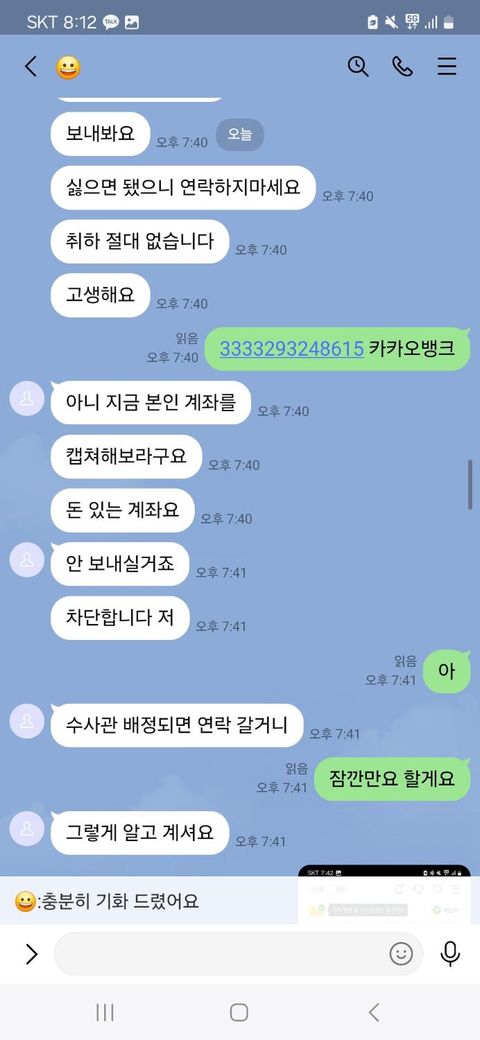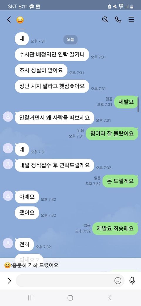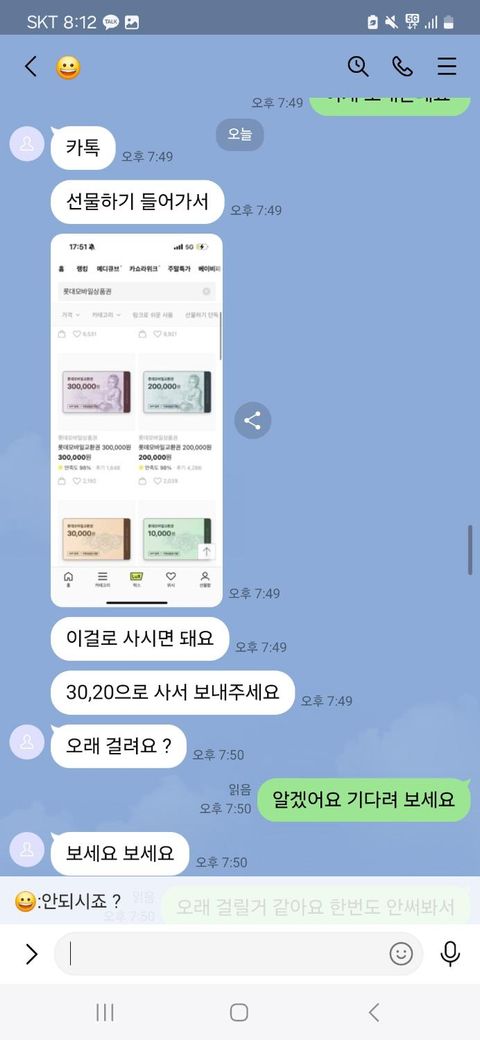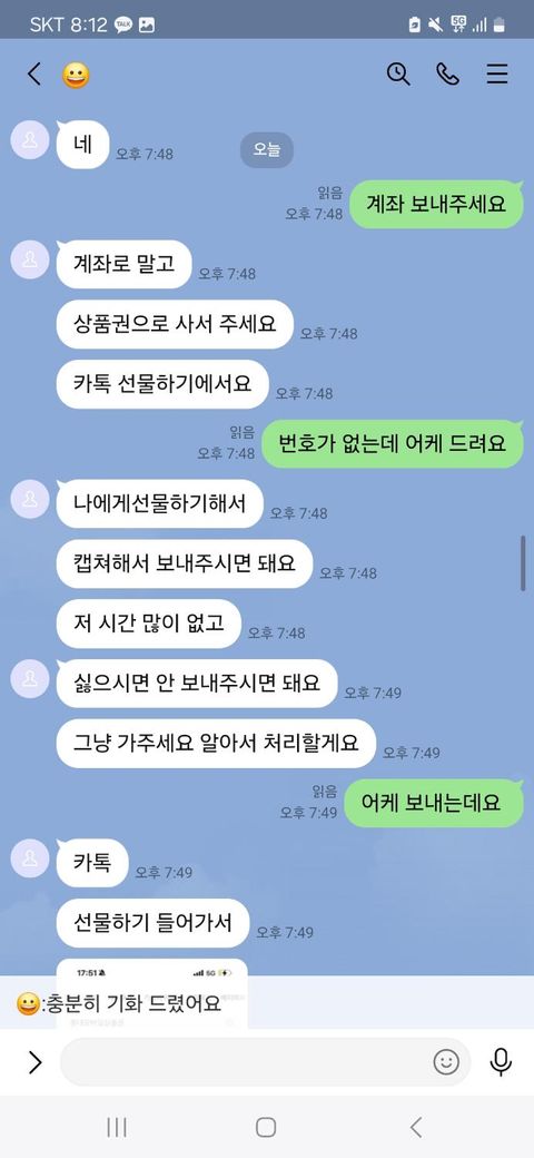 처음에 궁금해서 물어봤다가 잠깐일이 있어서 문자를 못봤는데 갑자기 경찰청 사건 접수 했다고 문자를 보여주면서 협박을 하고 금전을 요구 합니다 금전도 계좌로 보내달라고 하는게 아닌 카카오톡 선물로 보내달라 하는데 진짜 처벌 받나요?
