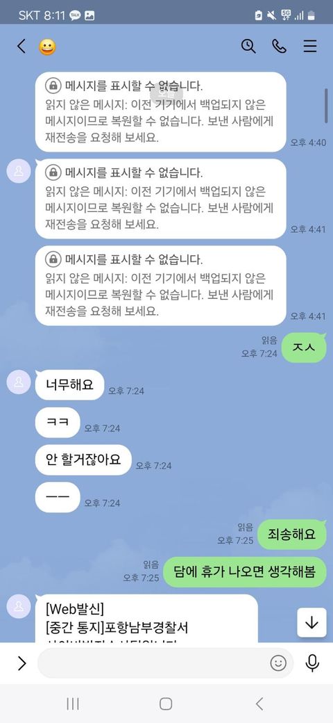 호기심으로 한 라인 통매음으로 신고한다는데 어떻게 해야하나요
