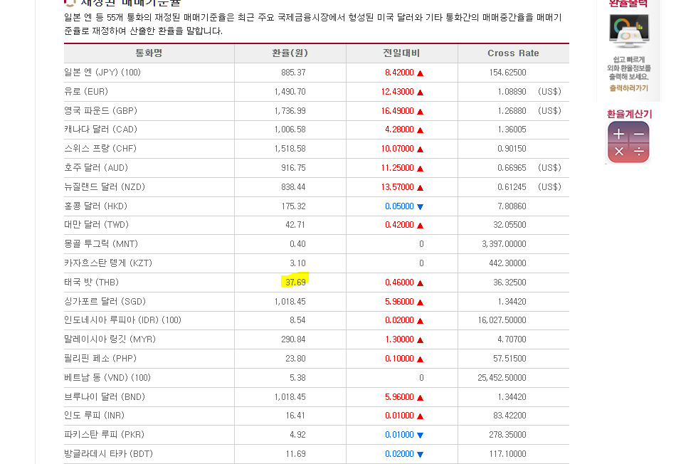 5/16 태국 37.69 이걸로 반영하는게맞나요?