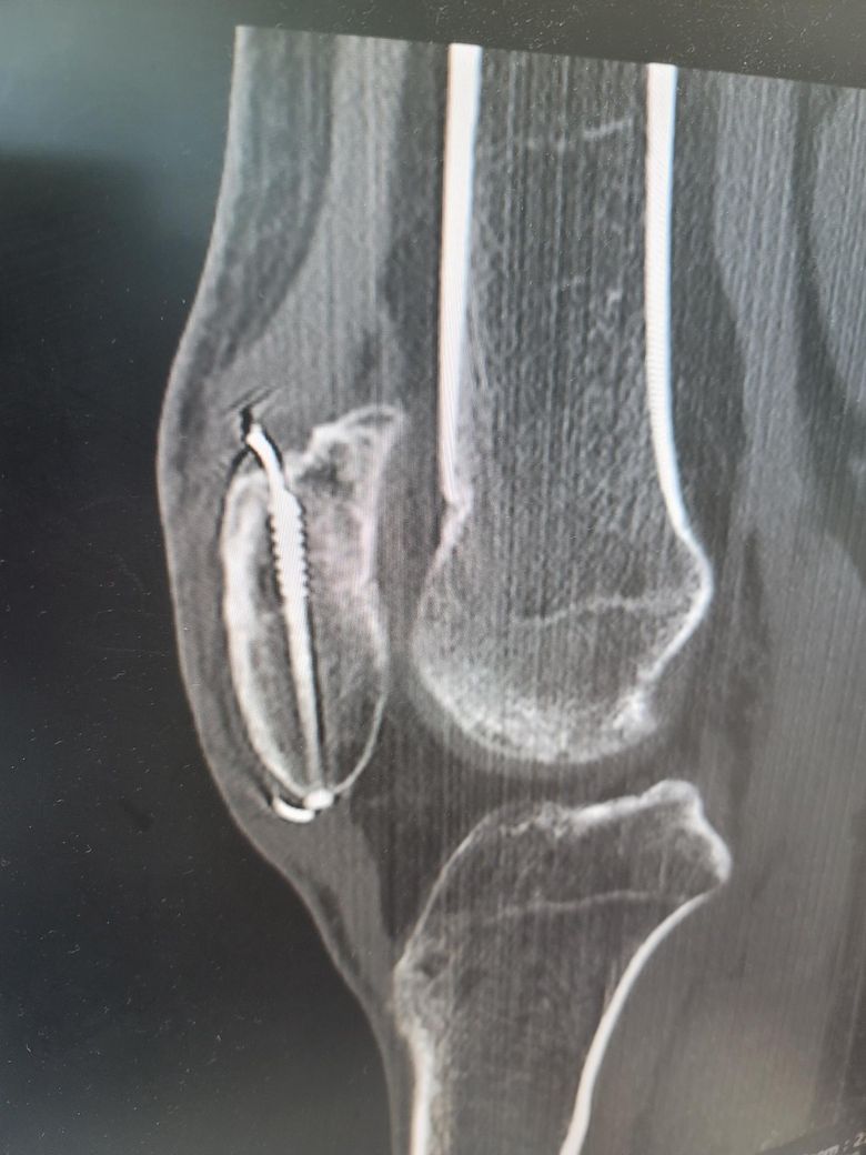 슬개골수술후 5개월차 ct입니다 분쇄골절 7조각이여도 엑스레이상 잘붙은즐알았는데 ct를찍어봤더니 양쪽 끝부분이 덜붙었더라구요 혹시 안붙으면 재수술하거나 뼈이식을 다시해야되나요? 걷거나 큰 통증은없는데