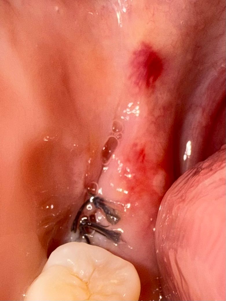 안녕하세요 화요일에 48번 사랑니를 발치했고 치과에서 처방해준 항생제를 빠짐없이 잘 챙겨 먹었고 클로르헥시딘 가글도 하루에 2-3번 해줬는데요 항생제는 이제 다 먹었고 가글도 다 사용해서 없는데 어제부터 너무 잇몸이 따가워서 보니까 사진처럼 상처가 났더라구요.. 괜찮은건가요? 봉합사 때문에 상처가 난건지 아니면 위생관리가 잘 되지않아서 그런건지 궁금하네요