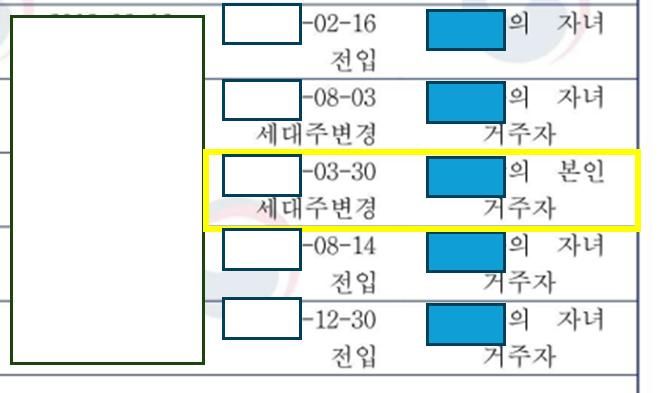 근데 초본을 확인해보니깐 부모님께서 저를 살던집의 세대주로 잠깐 변경해놓았더라구요.