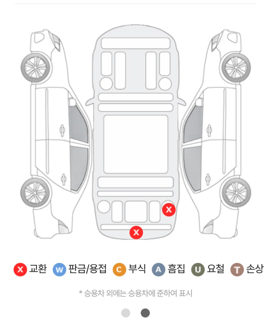 가장 중점적으로 보는 이유는 사고 여부를 보기 위함 입니다 사고가 크게 난 차량은 절대 구매 하지 마세요.