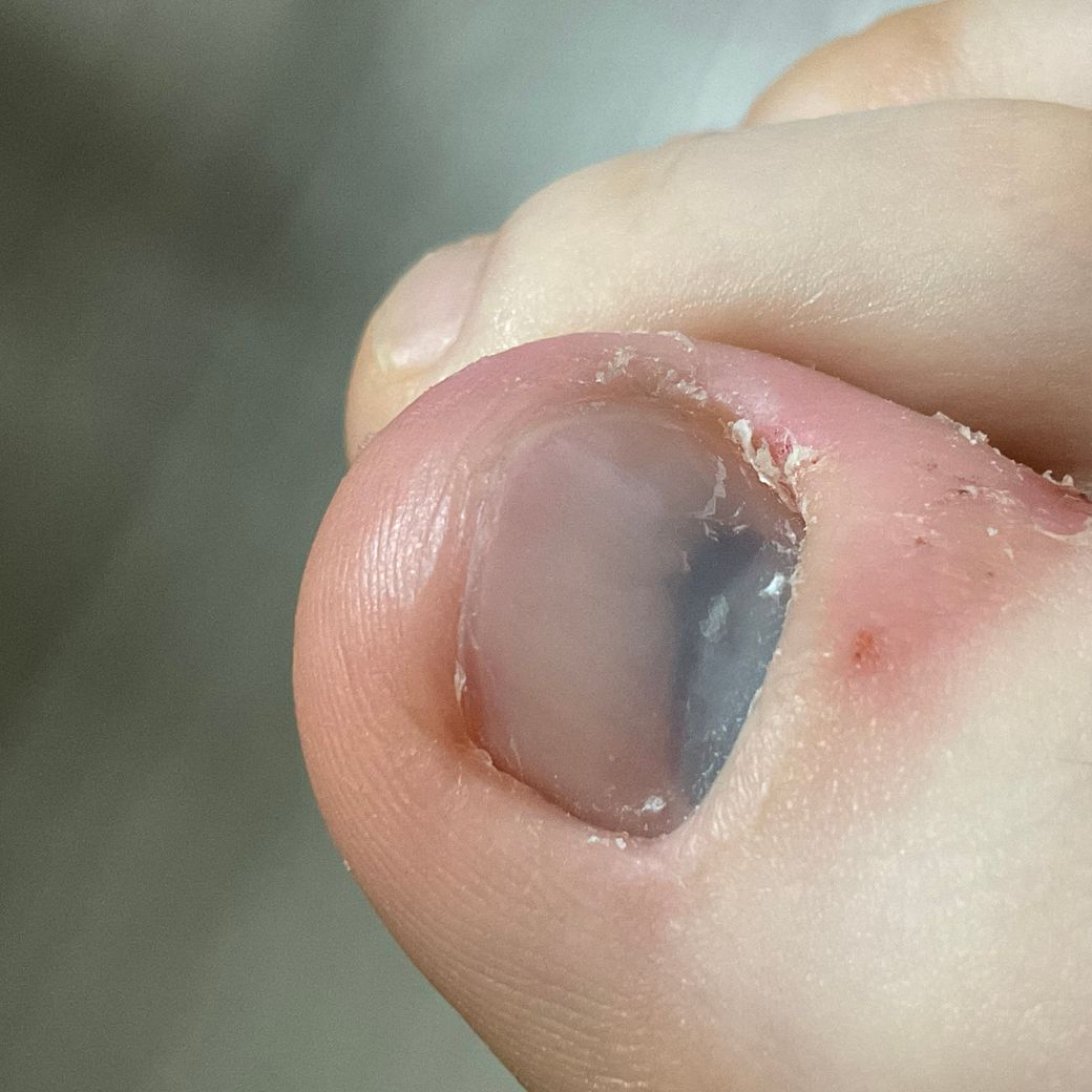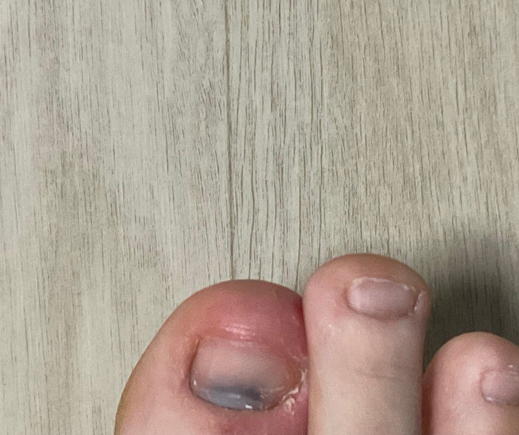 엄지 발톱에 유리 밥그릇 떨어져서 혈관이 심하게 터진 듯한 멍이 들었어요