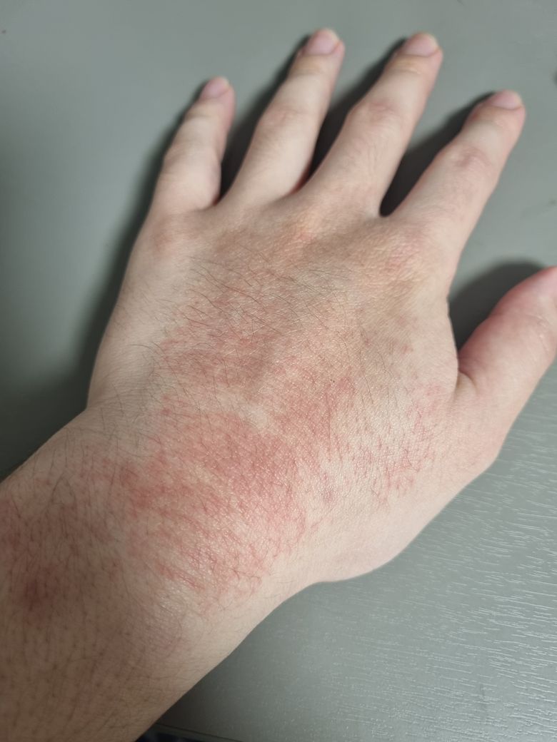 손등의 피부발진 때문에 걱정이시군요.