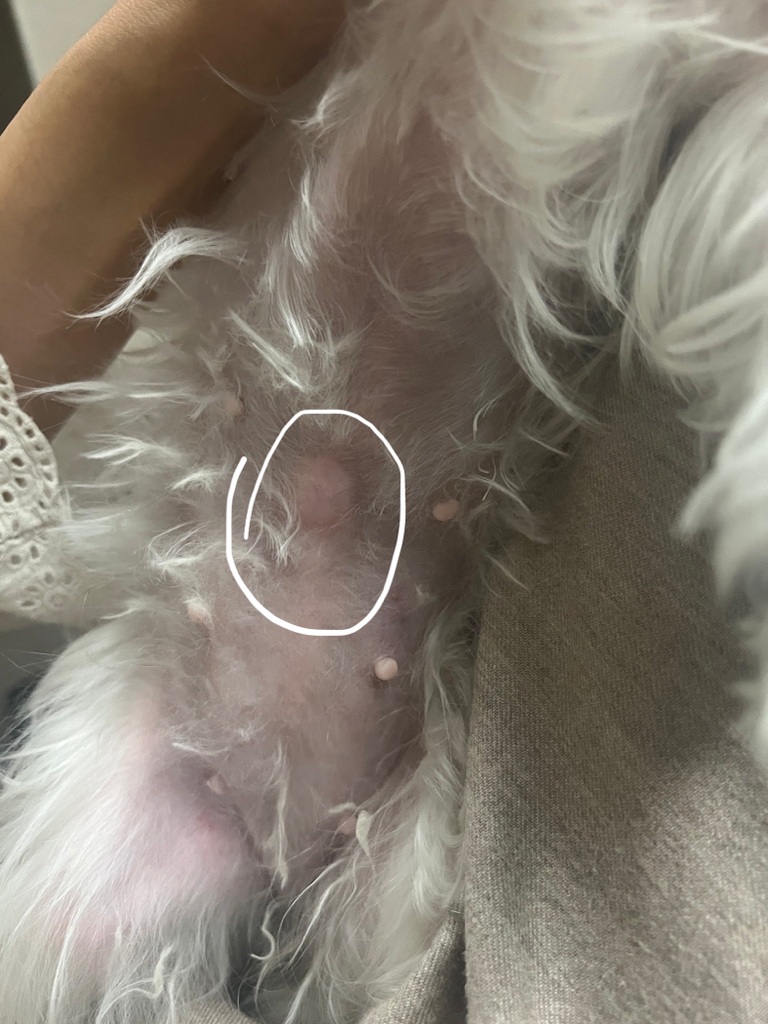 색이 검붉은 상태가 아니기 때문에 실질 장기의 탈장으로 인한 괴사 소견 즉, 응급한 상황은 아닌것으로 생각되나