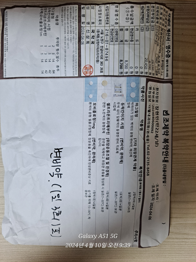 진료를 받고 약국에서 조제를 받은