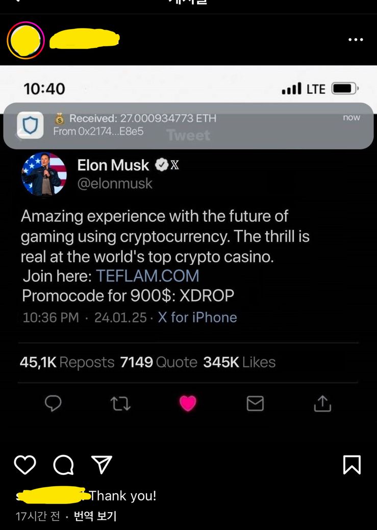해킹된 이후로 올라온 게시물은 사진으로 첨부할게요. 로그인을 할 수 없는 상태라 개인정보를 삭제할 수가 없네요.