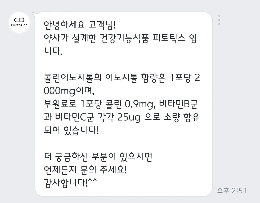 이노시톨은 단독 복용 시 복약 순응도가 떨어지고 효과 대비 부작용 우려가 크므로 권장드리지 않습니다. 고함량 비타민B군 제품 복용만으로 충분하겠습니다.