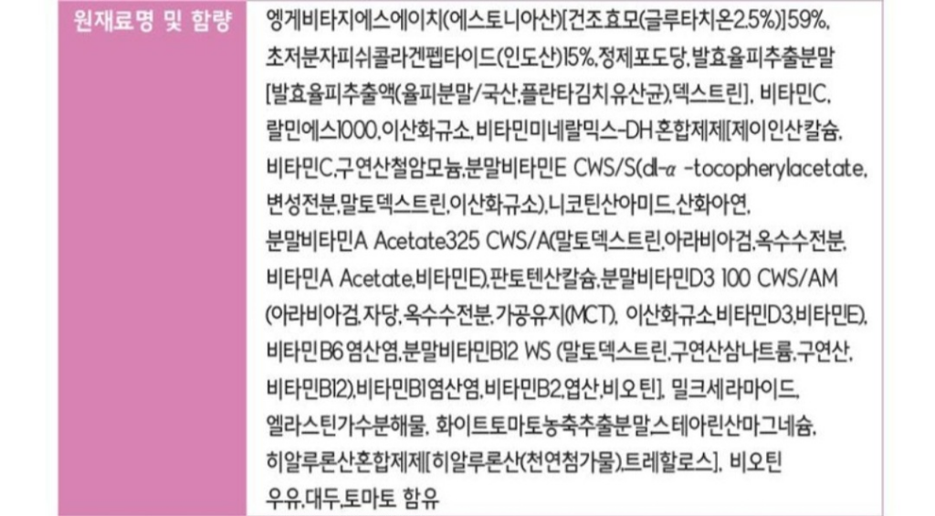 함량부분에서는 원재로 전체를 찍어주셔서 확인을 할 수가 없지만 보통 저런 제품들은 겹치더라도 함량이 높지 않아서 괜찮습니다.