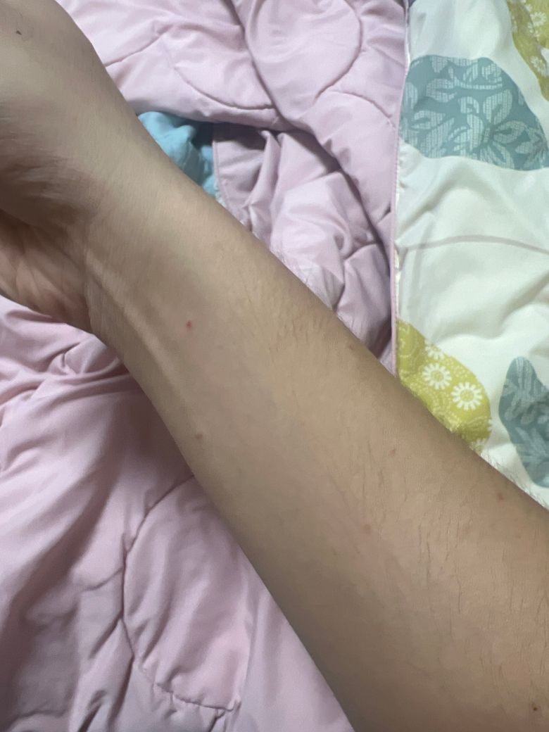 요즘 팔 어깨 전체적으로 빨간 동그라미 점 같은게 나고 있는데 이게 모기가 물린 것일까요 피부명일까요 ..?
