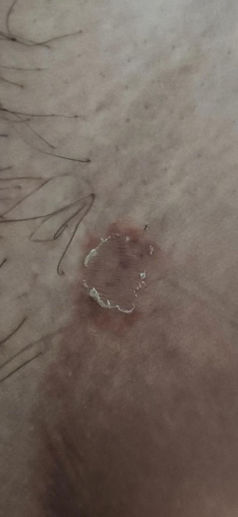 성매개 전염병의 피부 병변 같지는 않아 보입니다. 모낭염 같은 염증 반응이 지나간 흔적 같기는 해요. 일반적으로 관계를 하고 난 이후에 바로 피부에 뭐가 나지는 않는답니다.