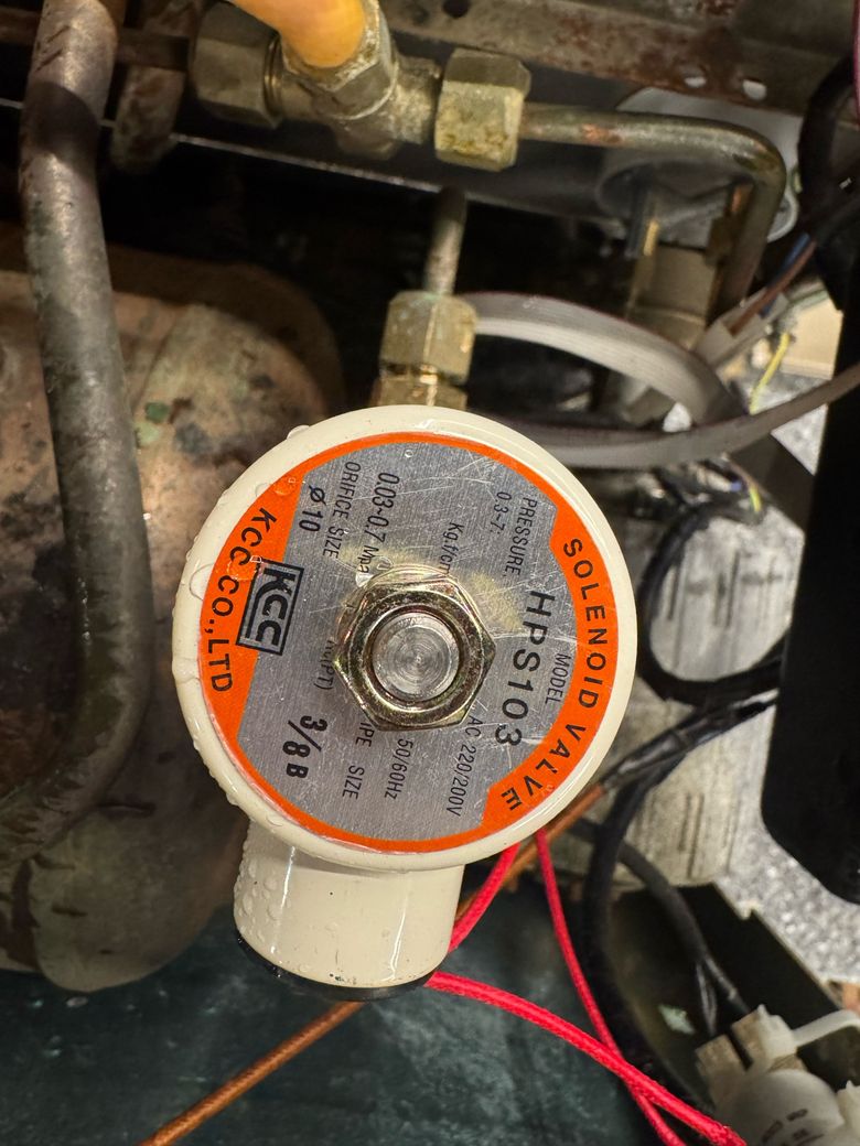 현재 장착하신 KCC HPS103 밸브는 커피머신의 고압 추출용으로는 적합하지 않습니다. ‘기존 ODE 밸브의 모델명(21TG... 등)을 정확히 확인하여 동일한 사양(최소 15~20 bar 견디는 제품)으로 구매하셔야 합니다.