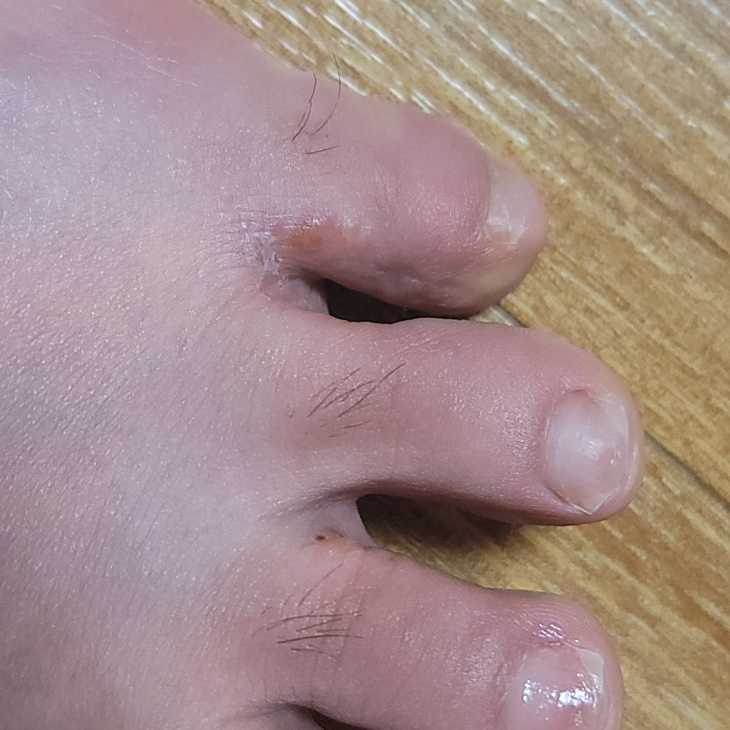 오늘 발톱을 깎다가 발견했는데 이러네요 빨갛고 약간 물집형태를 가지고 있는거 같아요 가렵지는 않습니다. 약국에서 무좀약 구매해서 발라주면 될까요?