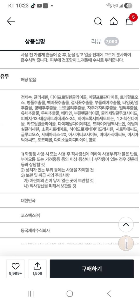 현재 보이는 붉어짐과 약한 부종은 세균 감염이 악화된 양상보다는 물리적 자극과 화장품 성분 자극이 복합적으로 작용한 경우로 판단됩니다. 사용한 제품 성분 중에는 식물추출물, 향료, 멘톨 계열, 비타민 유도체 등이 포함되어 있어 손상된 피부에는 자극원이 될 수 있습니다.