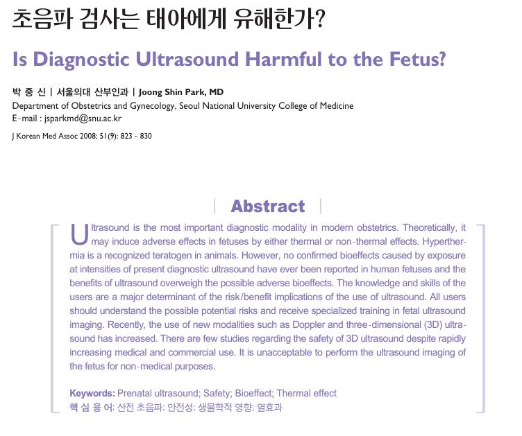 초음파검사는태아에게유해한가? Is Diagnostic Ultrasound Harmful to the Fetus?