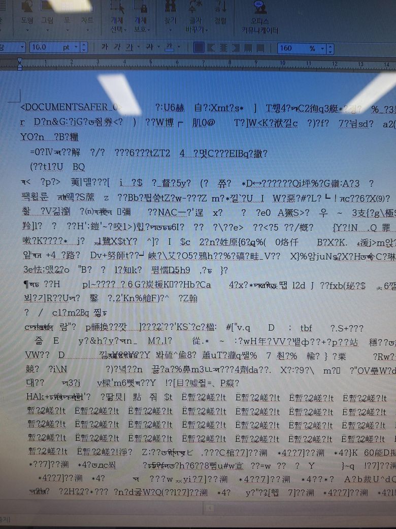 이게 이전에 열었을때는 잘 열렸었는데 오늘 열어보니 이상한 글씨만 나오네요 왜이런지 아시는분 있으시면 도와주세요 ㅠㅠ