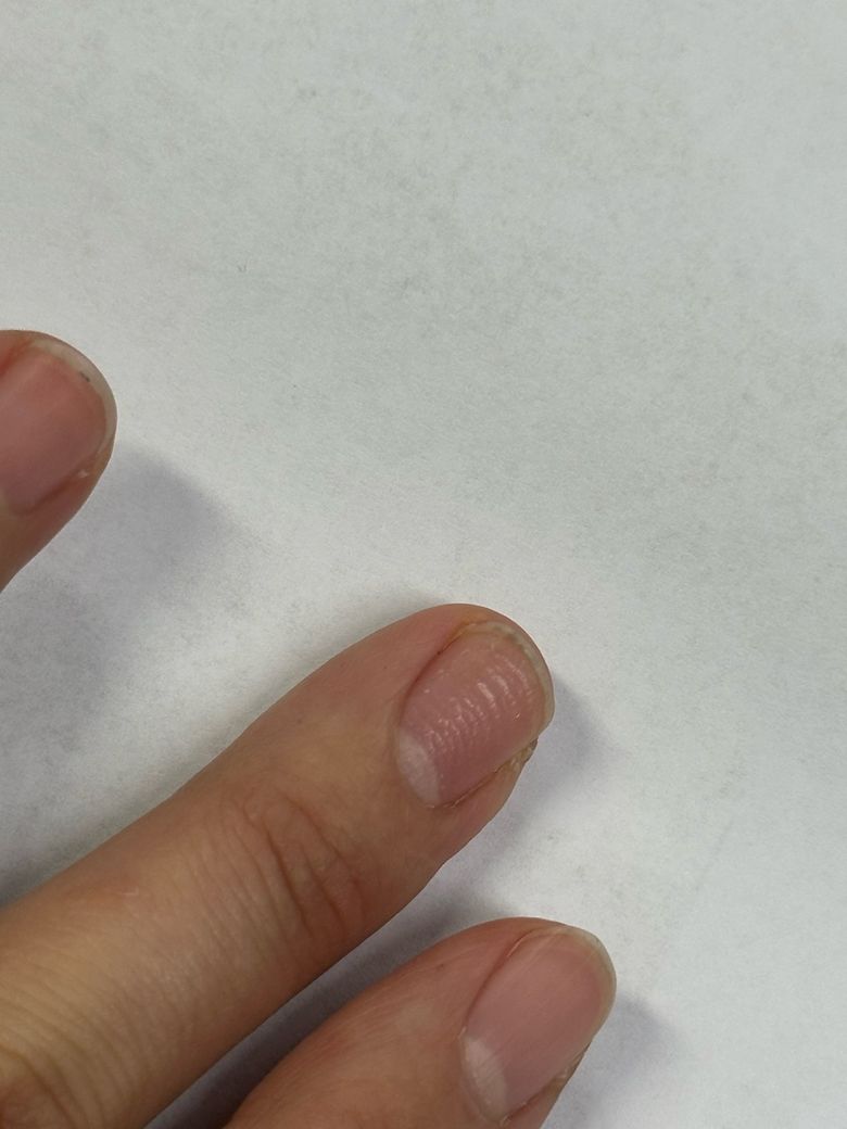 손 사용이 많거나 물·세정제 노출이 잦으면 손톱 성장층이 불안정해져 비슷한 모양이 생길 수 있습니다. 네일아트를 하지 않아도 발생합니다.