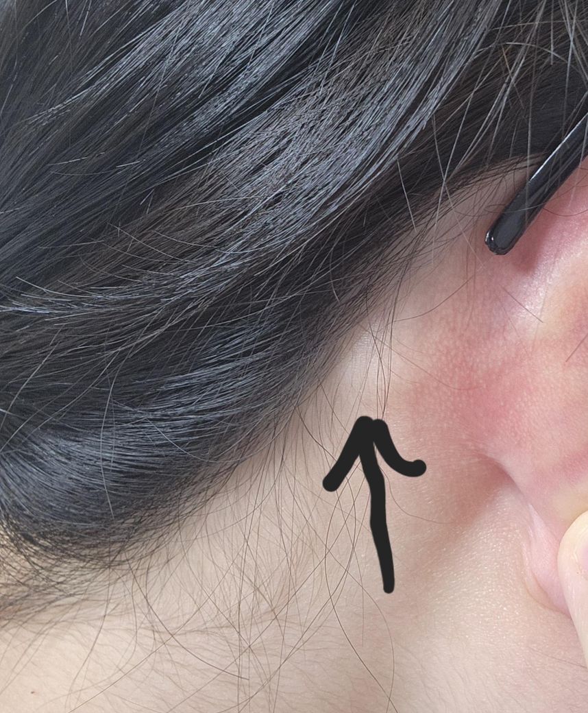 귀 뒤를 만져보면 왼쪽보다 오른쪽 부분이 더 튀어나와있는데 병원에 가봐야 할까요? 사진에 표시한 위치가 유양돌기가 있는 부분이 맞는지 궁금해요