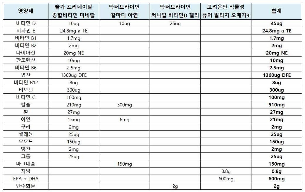 우선 복용을 굉장히 잘하는 편이신데 제가 선택하면 1번안을 선택할거같고 여기에 임신중 장건강 유지를 위해 따로 유산균을 챙기시는걸 권해드립니다.