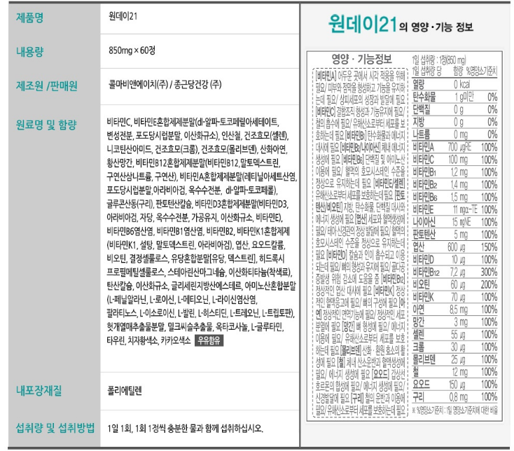 영양제 용량 및 복용법 문의 드립니다.(각 성분표 첨부)