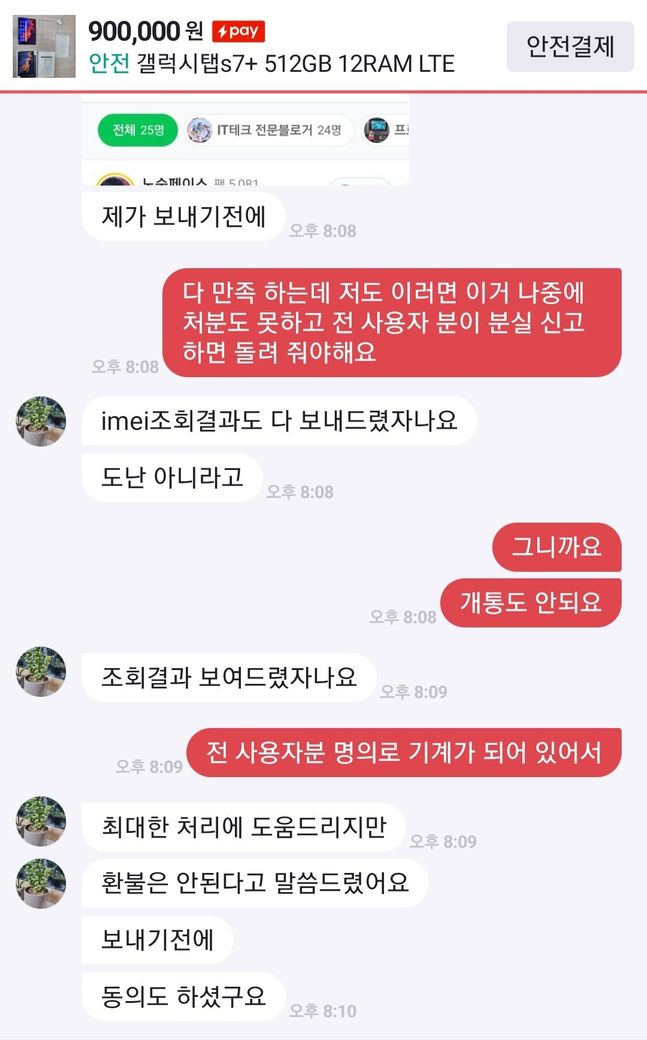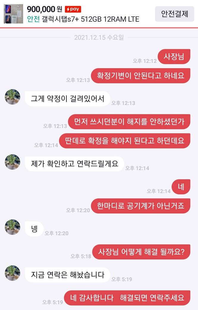 해결및 환불요청 했지만 물건에는 전혀 하자가 없다며