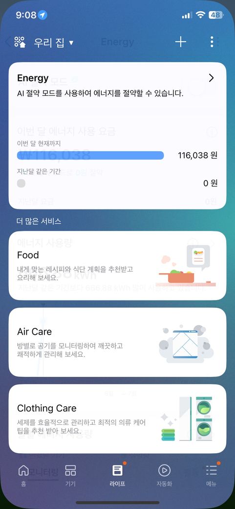 헉… 하루 몇 시간 틀었을 뿐인데 11만 원 넘게 나왔다고 뜨면 진짜 당황스럽죠 ㅠㅠ 근데 다행히 실제 요금이 그만큼 나오는 건 아니고, 스마트싱스 앱에서 보여주는 건 ‘예상 요금’이에요. 이건 현재 소비전력을 기준으로 단순 계산한 추정치라서 실제 전기요금 고지서랑은 다를 수 있어요. 특히 인버터 에어컨은 처음 켤 때 전력 소모가 크고, 이후엔 유지 전력이 낮아지는데, 스마트싱스는 이걸 반영하지 못하고 초기 전력 기준으로 계속 계산해서 요금이 과장돼 보일 수 있어요. 또 AI 절약 모드나 무풍 모드를 안 켜면 전력 소모가 더 커지고, 실외기 통풍이 안 되거나 창문이 열려 있으면 냉방 효율이 떨어져서 더 많은 전기를 쓰게 돼요. 그래서 지금처럼 요금이 이상하게 높게 나올 땐 스마트싱스 앱에서 AI 절약 모드 켜기, 무풍 모드로 전환해서 유지 전력 줄이기 이렇게 해보면 실제 요금이랑 차이가 얼마나 나는지 감이 잡힐 거예요. 진짜 요금은 한전 고지서로 확인하는 게 정확하니까 그만큼 안 나오기를 바랍니다!