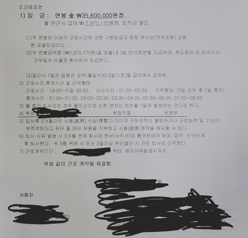 1.포괄임금 계약서라서 13시간30분 근무에 대한 야간수당,각종 수당등 2근1휴로 계산했을시 한달 급여액이 계약서 금액을 넘어가는거에 대해서는 이의를 제기 할 수 없는지