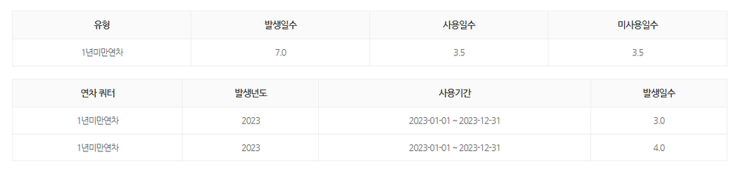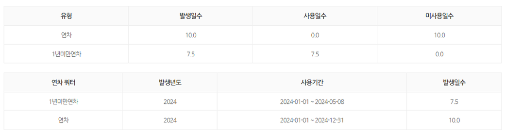 정규직으로 23년 5월 8일 입사하였고 24년 5월 31일 퇴사 예정입니다. 소진해야하는 연차가 몇 개인지 궁금해서요.