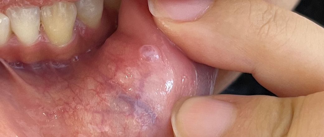 오랜기간동안 지속되엇고 만졋을때 단단하다면 점액종일 가능성이 있습니다. 치과에 가셔서 마취를 하고 나서 제거를 하셔야될것같습니다.