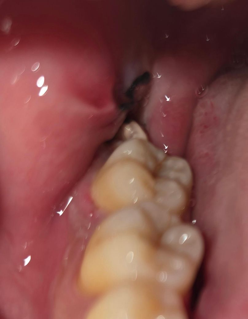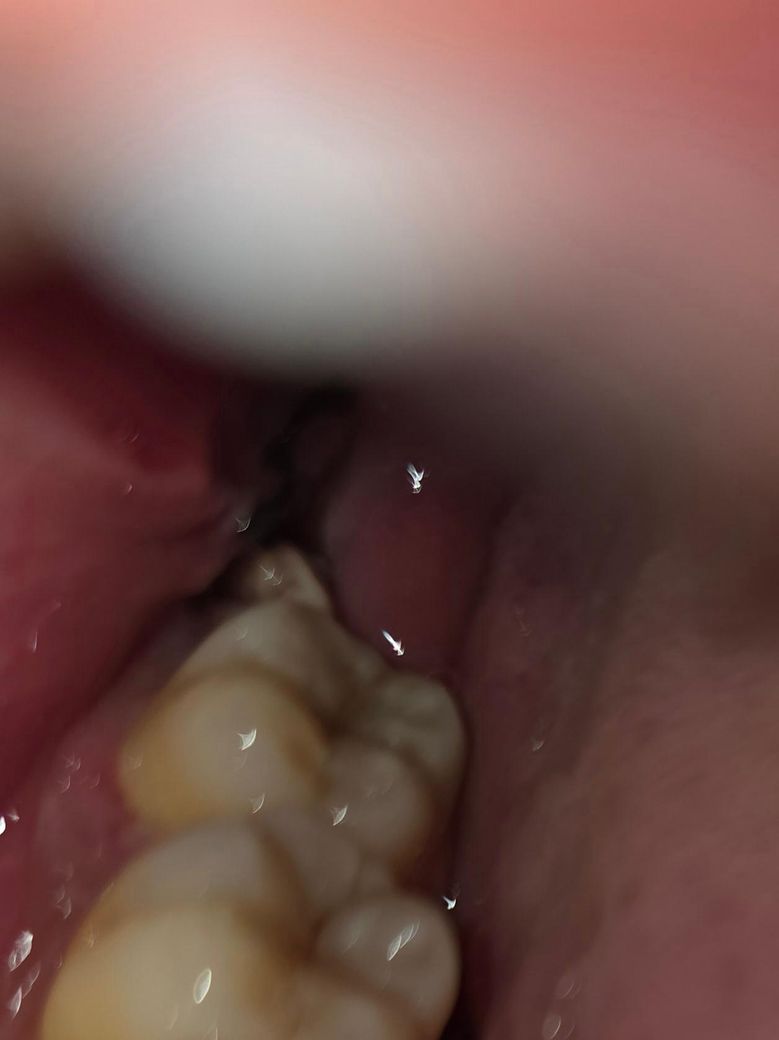 사랑니 발치한 지는 3일 됐습니다. 발치한 곳에 이상한 돌같은게 있는데 냄새가 진짜 너무 고약하고 이물감이 심해서 빼고싶은데 이게 뭘까요? 아프진 않습니다.. 냄새가 너무심해서 숨만쉬어도 나는거같아요