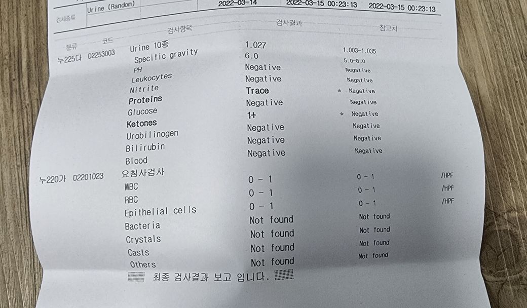 다시 소변 검사를 했고 결과는 사진과 같습니다.